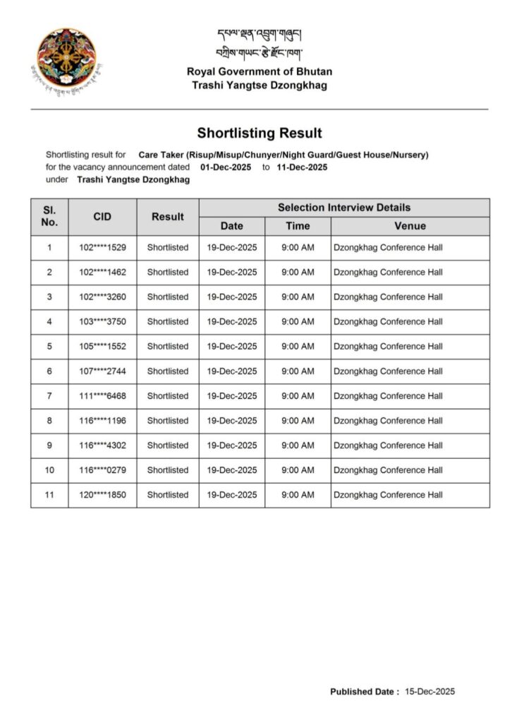 Care Taker: https://jobs.rcsc.gov.bt/…/ShortlistingResult_4110_79.pdf